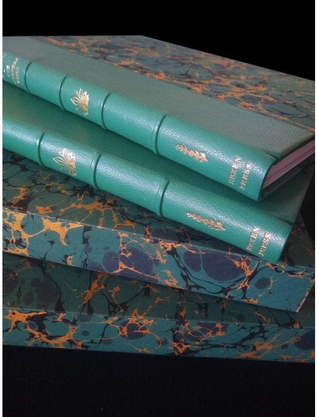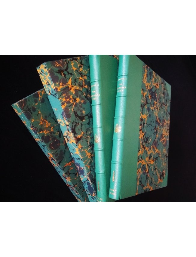 Half-leather binding in Venetian Emerald Shagreen Leather on five raised bands.
