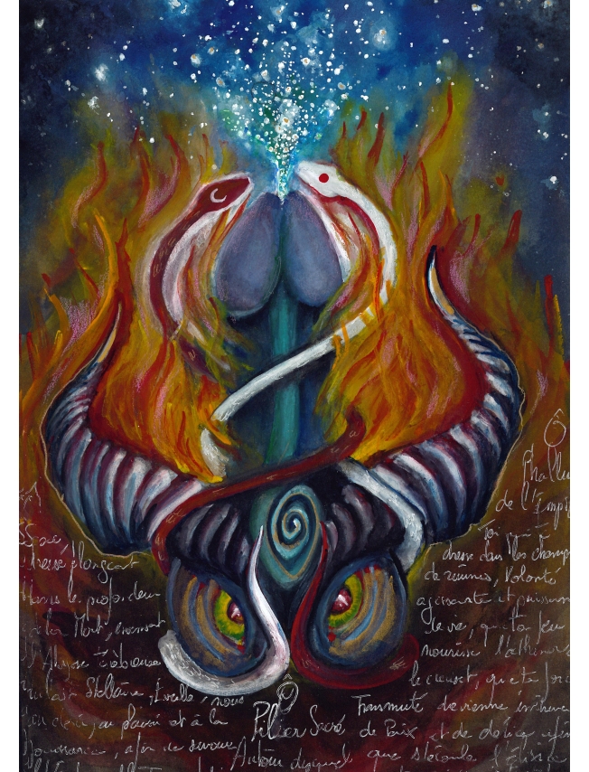 The Daimon, hypostasis of the sorcerer's Initiator, the Serpent and the Goat, he whispers to souls who can hear him the impious words of power and knowledge! Both master and familiar sorcerer, initiator and servant, temptation and tempter, he is the taste of the apple and the kiss of the serpent, poison and remedy...