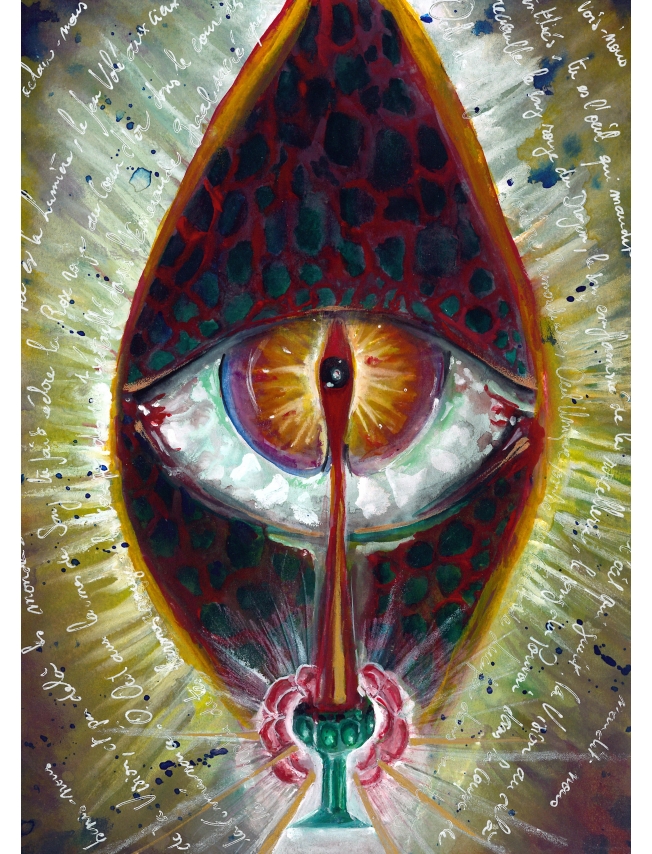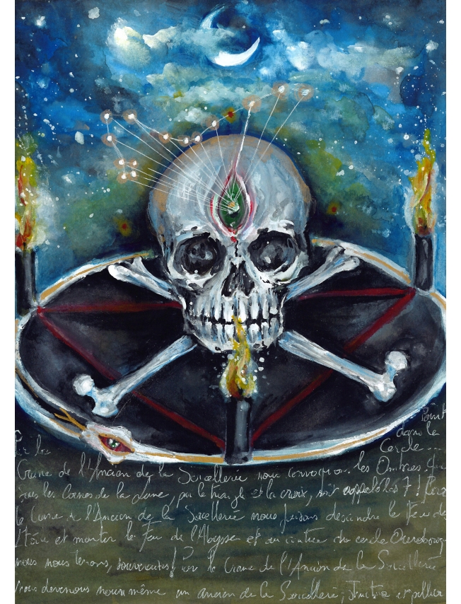 These ex-votos take here the form of the Skull, the Eye, the Hand, the Heart, the Egg, the Phallus and the Vulva. They are related to parts of the physical body and subtle bodies and are the expression of the incarnation of magical power in the body of the mystic-sorcerer, an atavistic vision of sorcerous forces. They are supports for meditation - votive icons referring to the Mysteries. These ex-votos are a symbolist, pictorial expression, to be deciphered not only by knowledge but also by corporal feeling through a process of incorporation. They are intended to reify different powers, different states of consciousness, of matter, of our bodies, and of the practices of witchcraft.